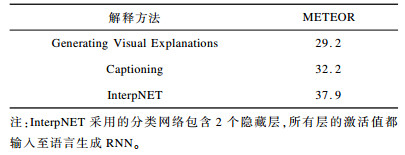 2.2 解释方法定量评价目前, 研究者主要采用基于公开数据集的方式定量评价解释方法。测试使用的公开发布数据集及其特点如表 2所示。本文采用上节描述的滤波器可解释性和滤波器位置不稳定性指标, 对当前典型的深度卷积神经网络及其经过可解释CNN构建方法改造的网络进行定量评估。通过对如AlexNet[101]、VGG[102]等典型CNN的改造, 滤波器可解释性指标Pf和位置不稳定性指标EfEKk=1Df, k都有大幅提高, 但是离最终实现对CNN的解释还有较大差距, 如表 3和表 4所示[44-45]。文本解释方法采用文本解释性指标METEOR进行评价, InterpNET为当前效果较好的方法, 然而其解释效果较差, 仍有很大的提升空间, 如表 5所示[53-54]。详细的实验过程和设置可参阅相关引用文献。