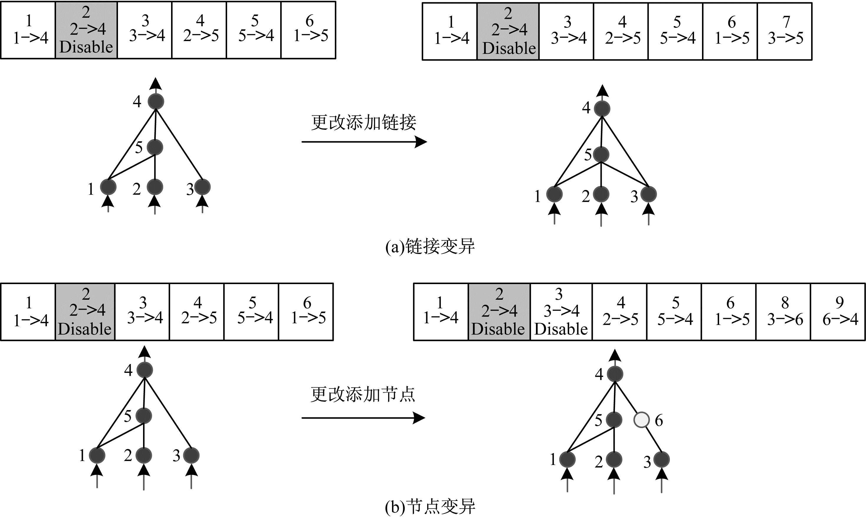 | 图 4 NEAT的2种神经网络变异方式 Fig. 4 Two neural network mutation modes of NEAT | |