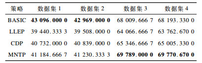 在分配实验中采用文献[11]提出的BASIC、CDP和LLEP策略以及本文基于预测算法的在线任务分配策略(MNTP)进行对比, 评价标准具体如下: