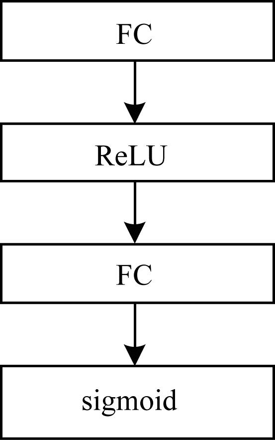 $ s={F}_{\mathrm{e}\mathrm{x}}\left(z, W\right)=\sigma \left(g\left(z, W\right)\right)=\sigma \left({W}_{2}\delta \left({W}_{1}z\right)\right) $ | (4) |
