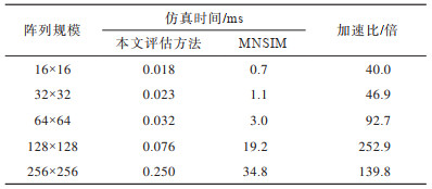 为评估加速器对阵列仿真的加速性能,选取存算一体神经网络加速器软件模拟器MNSIM[19]进行对比。针对不同规模的ReRAM阵列,阻变神经网络加速器的仿真时间和加速比如表 4所示。加速器主要通过提供并行的运算单元和流水运算对MVM操作进行硬件加速,但由于访存延迟无法忽略,因此对于不同规模的阵列,仿真时间并没有成倍增加。MNSIM软件仿真平台主要通过高主频的CPU串行完成MVM,随着阵列规模的提升,MNSIM的仿真时间显著增加,本文提出的阻变神经网络加速器评估方法可加速40.0~252.9倍。
