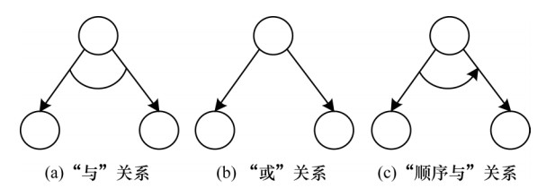 在实际应用中,子目标或者行为之间通常存在严格的顺序约束关系,打乱顺序则不能实现特定目标,而攻击树的“与”“或”关系不能被准确描述,因此引入扩展节点,其依赖关系为“顺序与”,即节点必须按照顺序关系依次完成才能实现父节点目标。扩展后的攻击树节点表示如图 2所示,扩展攻击树模型能够准确描述子攻击行为之间的相关性,构建完成后对节点的属性(攻击成本、攻击难度等)赋值,计算子节点的风险值,然后根据节点之间的依赖关系得到目标的风险值。
