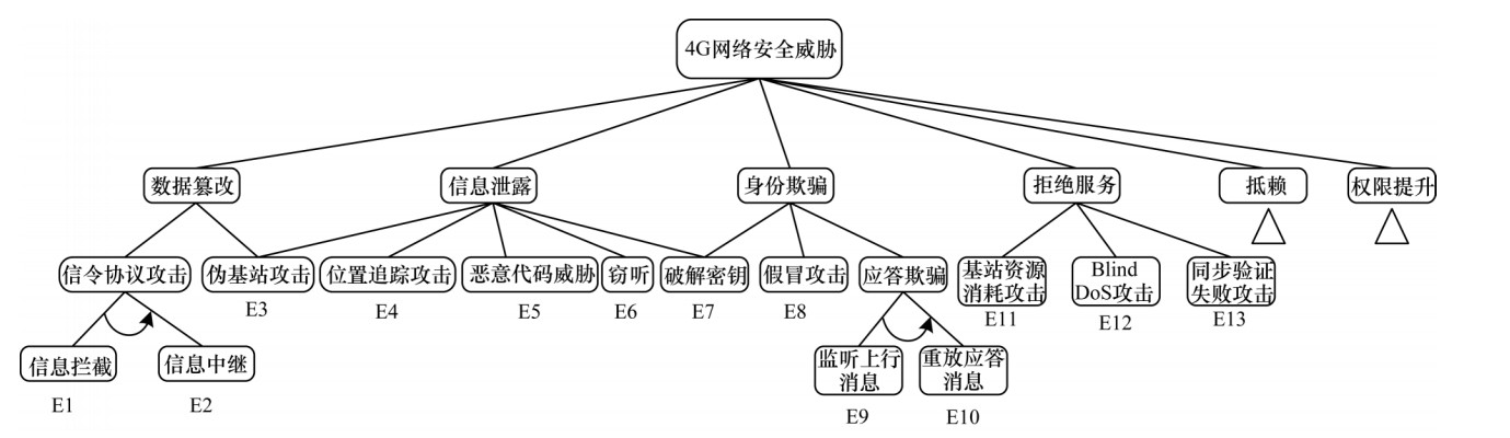 | 图 3 4G网络攻击树 Fig. 3 Attack tree of 4G network | |