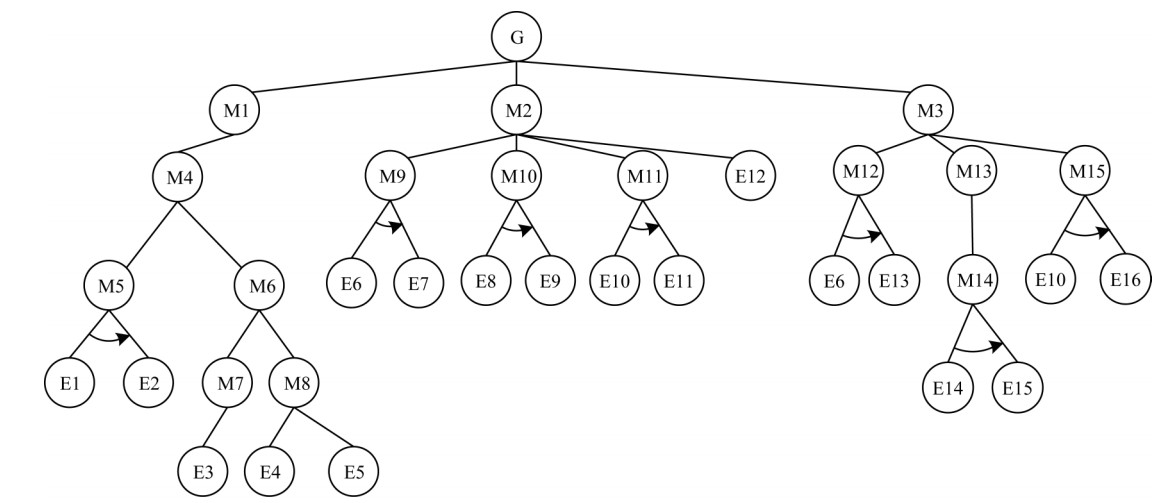 1) 在“与”关系中,父节点风险概率等于各子节点风险概率之积: