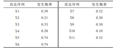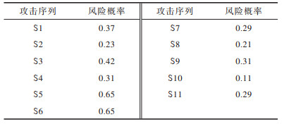 下载CSV 表 6 攻击序列的风险概率 Table 6 Risk probability of attack sequences |