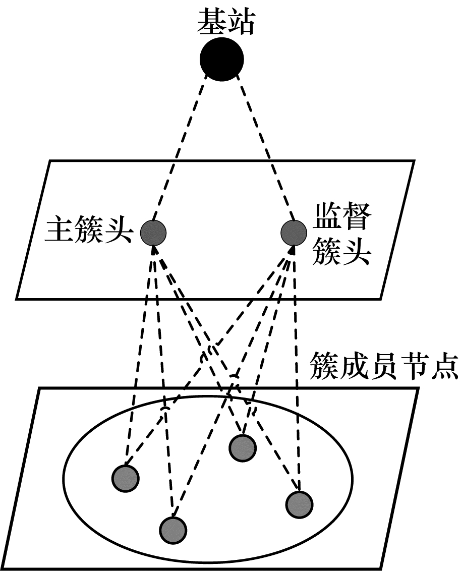 | 图 1 双簇头网络模型 Fig. 1 Network model based on double cluster head | |