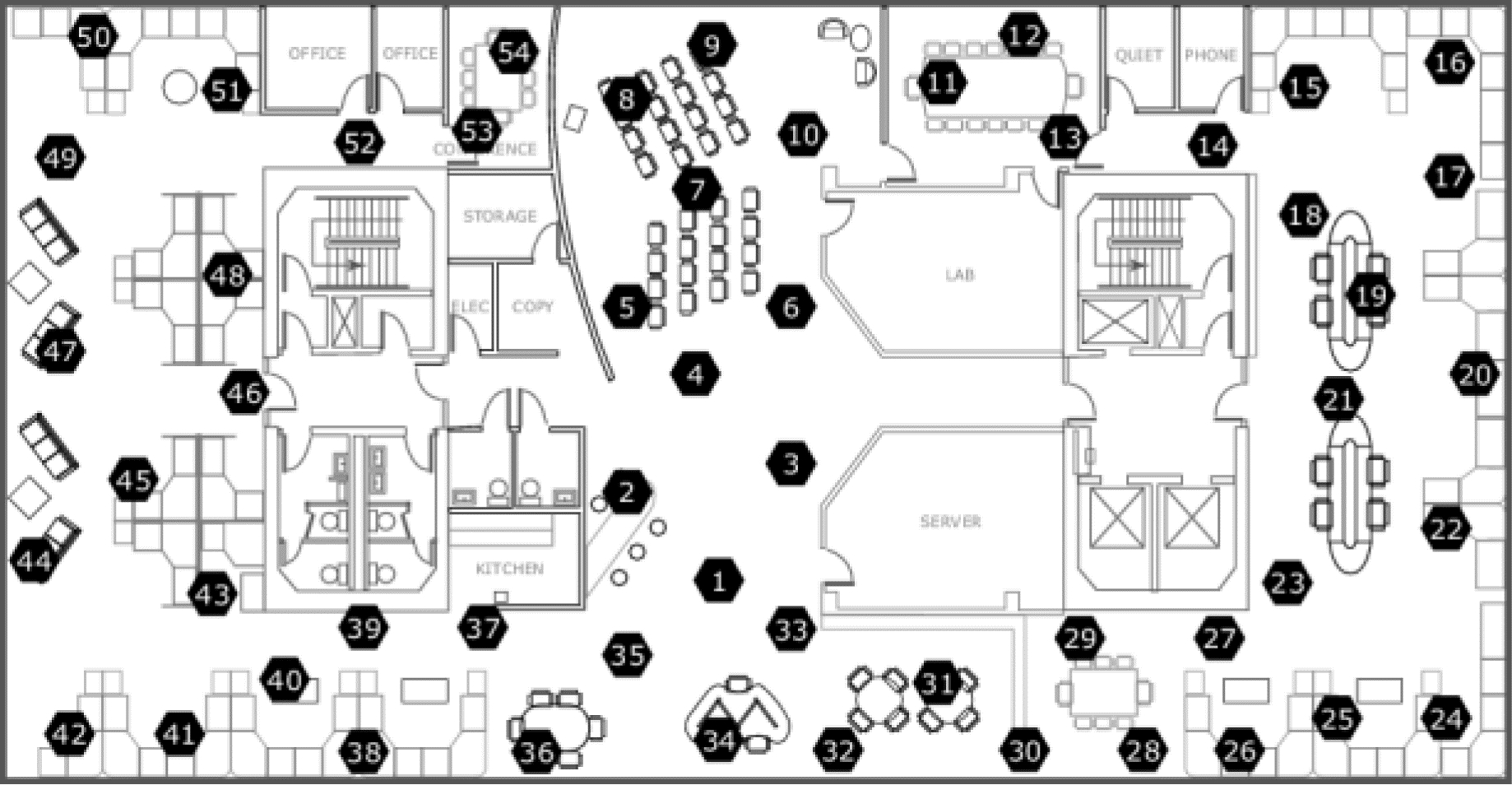 | 图 5 英特尔实验室数据集传感器分布 Fig. 5 Sensor distribution of Intel lab dataset | |