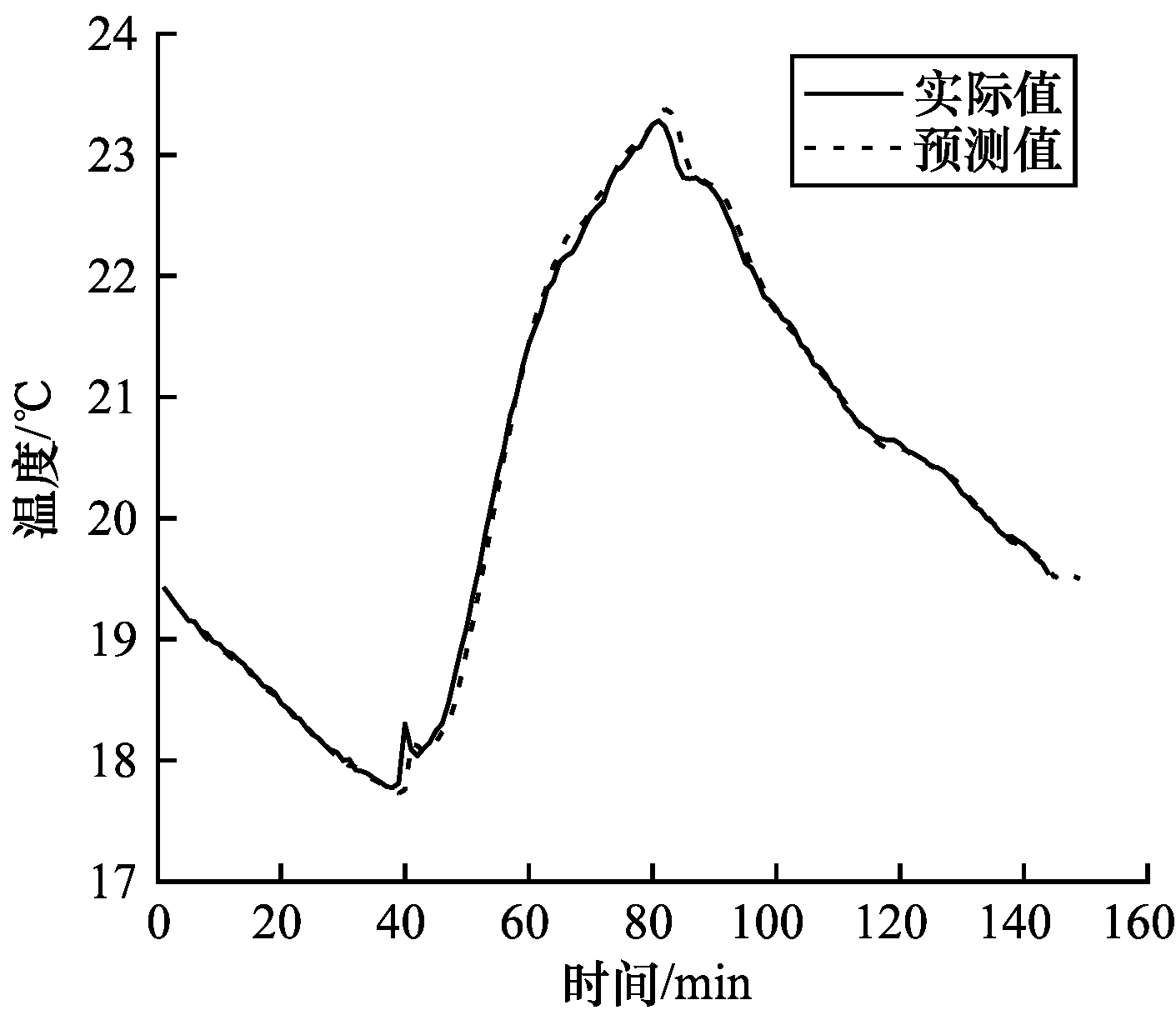 | 图 7 节点温度实际值与预测值的关系曲线 Fig. 7 The relationship curve between actual value and predicted value of node temperature | |