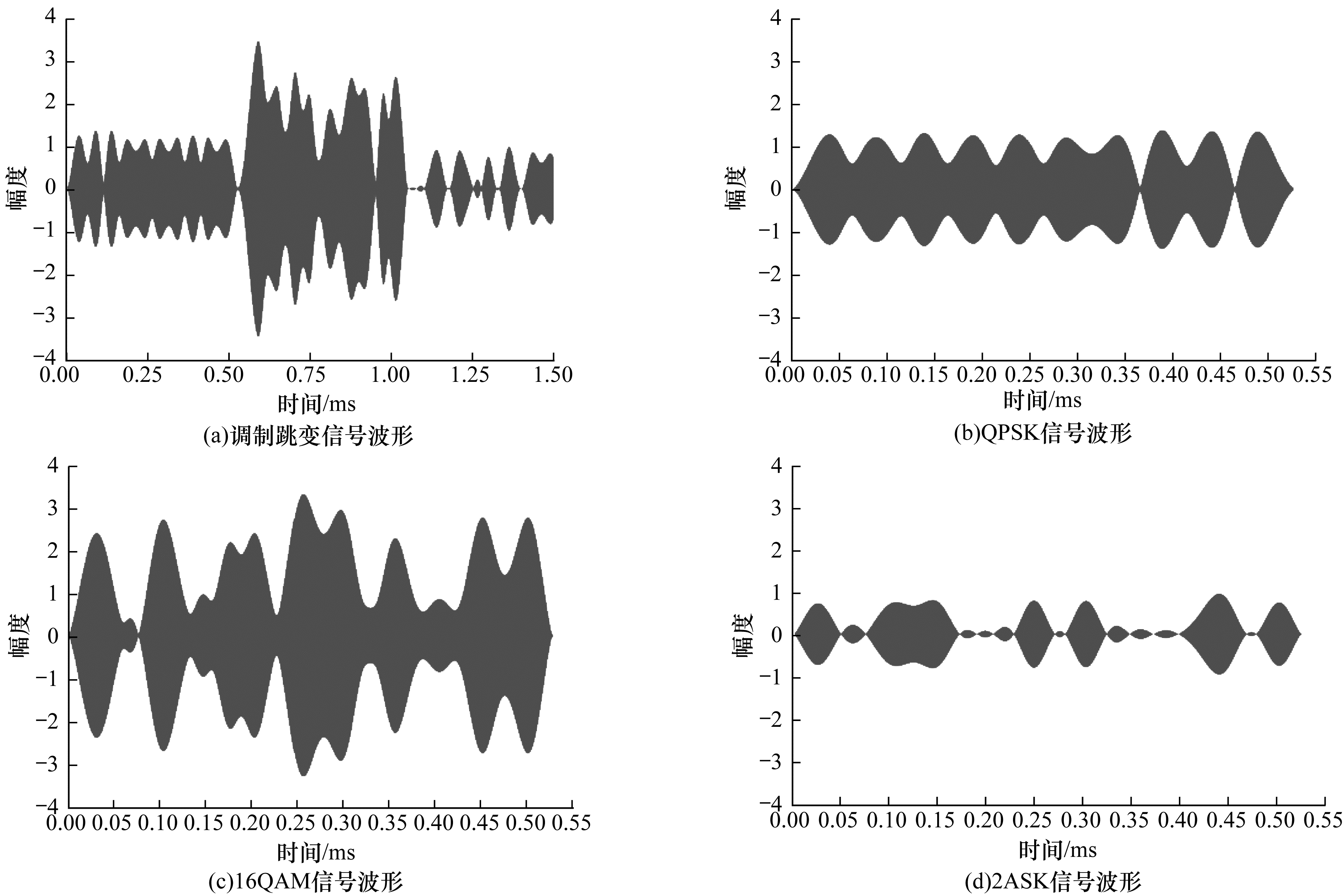 | 图 10 调制跳变信号仿真波形 Fig. 10 Simulation waveforms of modulation hopping signal | |