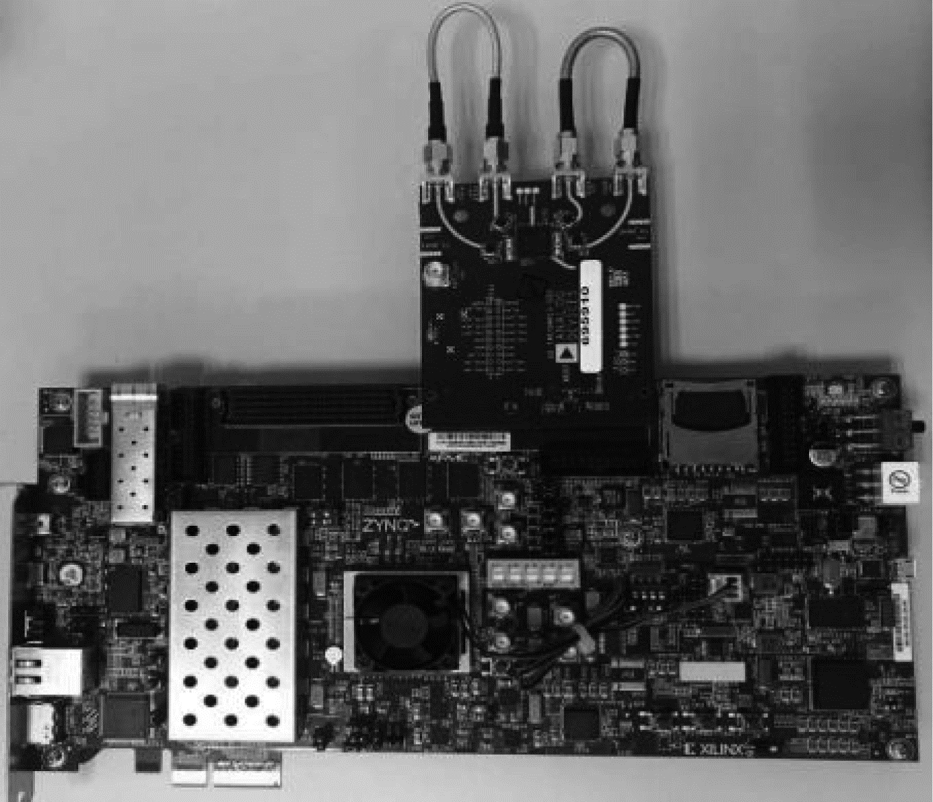 在软件无线电平台上对调制跳变信号进行实现,平台的基带调制芯片为支持动态可重构功能的Xilinx公司FPGA芯片,正交变频功能则利用AD9361芯片实现。硬件实验平台如图 11所示。