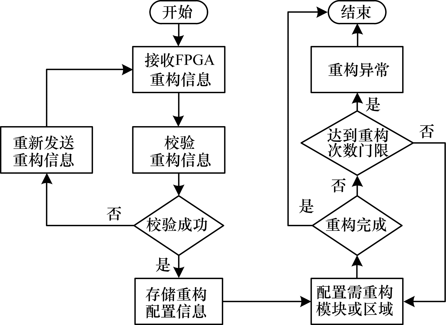 FPGA动态可重构技术被广泛应用于航天电子系统中。由于受空间辐照的影响,FPGA器件不可避免地受到单粒子效应影响[22-23],采用FPGA部分可重构技术则可以对失效的功能模块进行重新配置,以保证系统的正常工作,从而采用低等级FPGA器件实现高可靠性的航天级应用。此外,FPGA部分可重构技术还可实现功能复杂的大型系统应用,而若采用传统FPGA设计,则需要复杂的逻辑设计加以实现,难以避免复杂度高和资源消耗多的问题,从而限制了某些资源受限场景下的复杂系统应用。FPGA部分可重构技术对此提供了一种新的设计思想。