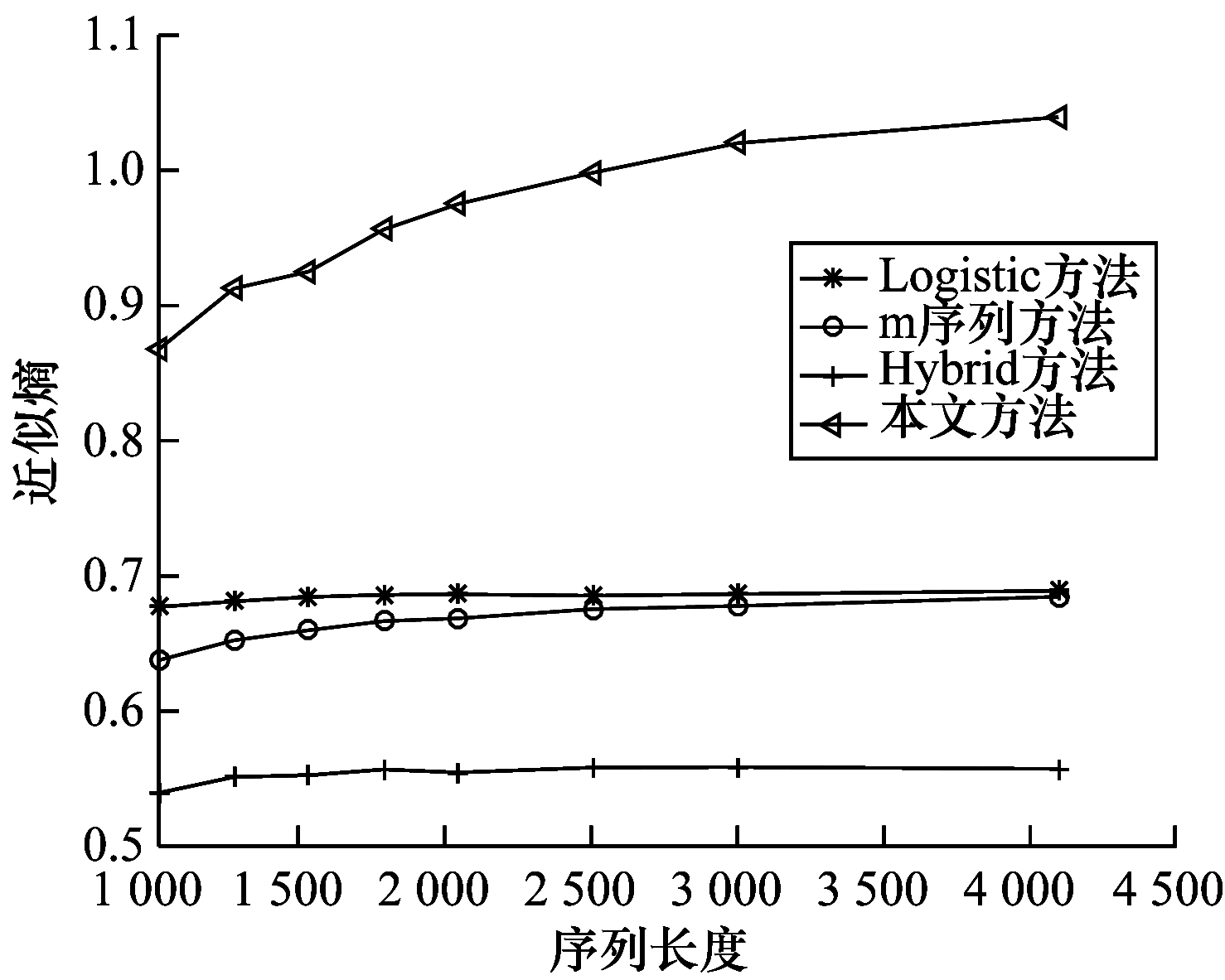 | 图 6 输出序列近似熵比较1 Fig. 6 Comparison 1 of approximate entropy of output sequence | |