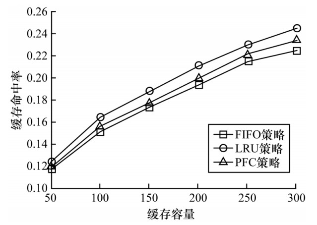 | 图 2 平均缓存命中率随缓存容量的变化情况 Fig. 2 The change of average cache hit rate with cache capacity | |