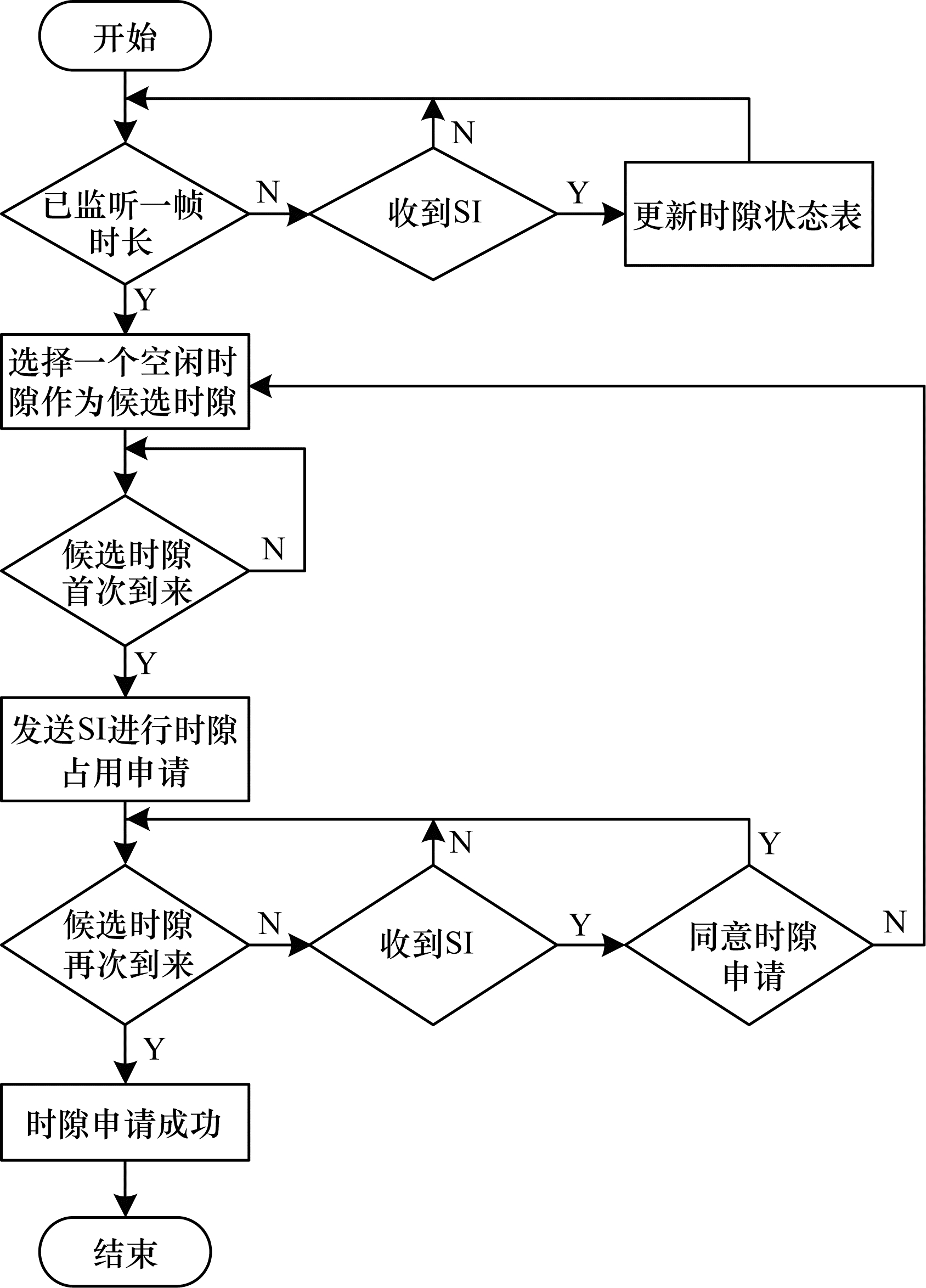 | 图 3 节点的时隙申请流程 Fig. 3 Time slot application procedure of the node | |