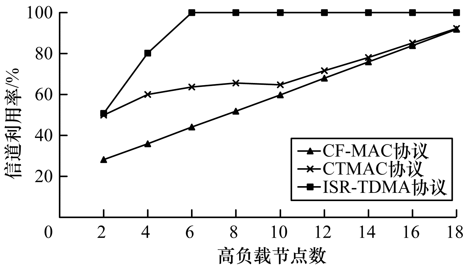 | 图 7 3种协议的信道利用率对比 Fig. 7 Comparison of channel utilization of three protocols | |