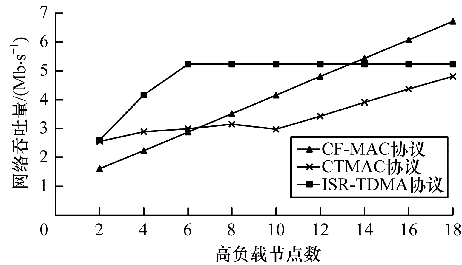 | 图 8 3种协议的网络吞吐量对比 Fig. 8 Network throughput comparison of three protocols | |