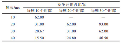 下载CSV 表 1 在不同帧长与每帧时隙下的竞争开销占比 Table 1 The proportion of contention overhead under different frame lengths and different time slots per-frame |