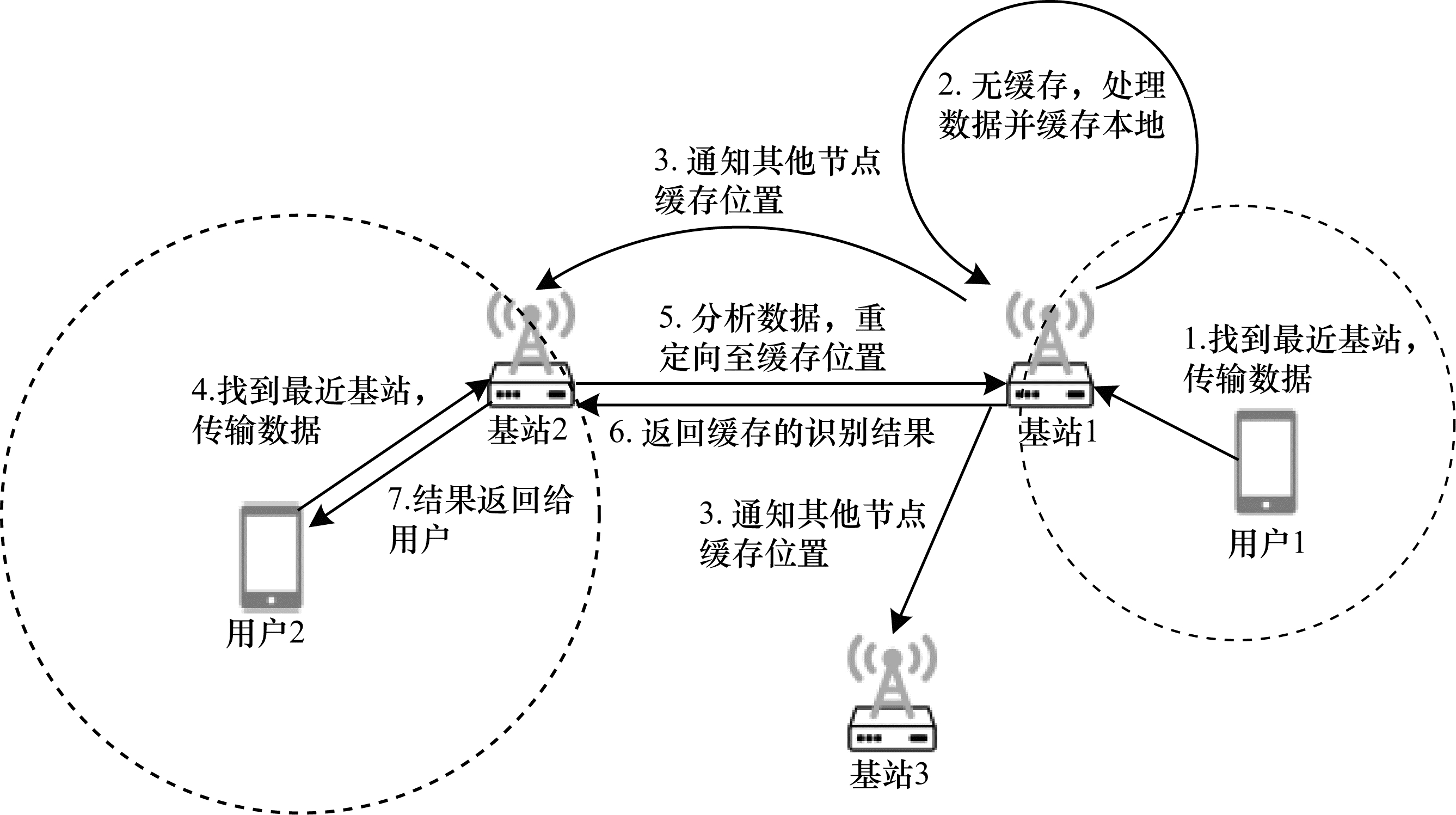 为避免冗余计算,本文设置缓存为全局式的,即在整个城市中任意一个位置的请求都只会被计算一次。一次典型的基于缓存的AR任务执行过程如图 1所示。