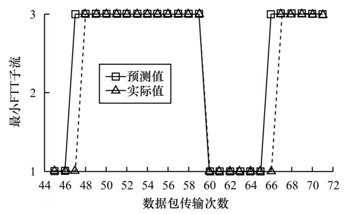 | 图 4 GM(1, N)-Markov算法预测最小FTT子流效果 Fig. 4 Effect of GM(1, N)-Markov algorithm on predicting the minimum FTT subflow | |