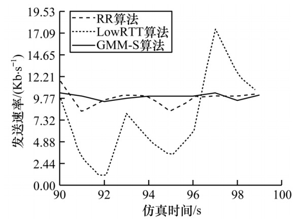 | 图 8 3种数据调度算法的发送速率对比 Fig. 8 Comparison of transmission rate of three data scheduling algorithms | |