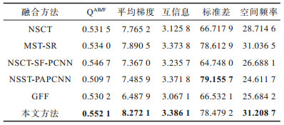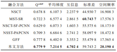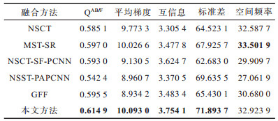 通过对以上主观视觉和客观指标的分析可知,本文方法能够很好地保留边缘信息,所得图像具有较高的对比度和丰富的细节信息,较对比方法能够得到更好的视觉效果。
