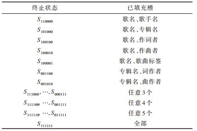 (1)当用户给出歌曲的歌名song信息和任一其他属性信息,则该状态为终止状态,共5种。