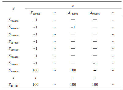 定义当对话状态达到设定的49种终止状态时,意味着用户完成了当前的任务,转移后的奖励值设为100,其他每一轮对话状态发生转移的奖励值均为-1,如表 4所示。