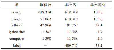 下载CSV 表 5 曲库中各个属性的情况描述 Table 5 Situation description of each attribute in the music database |
