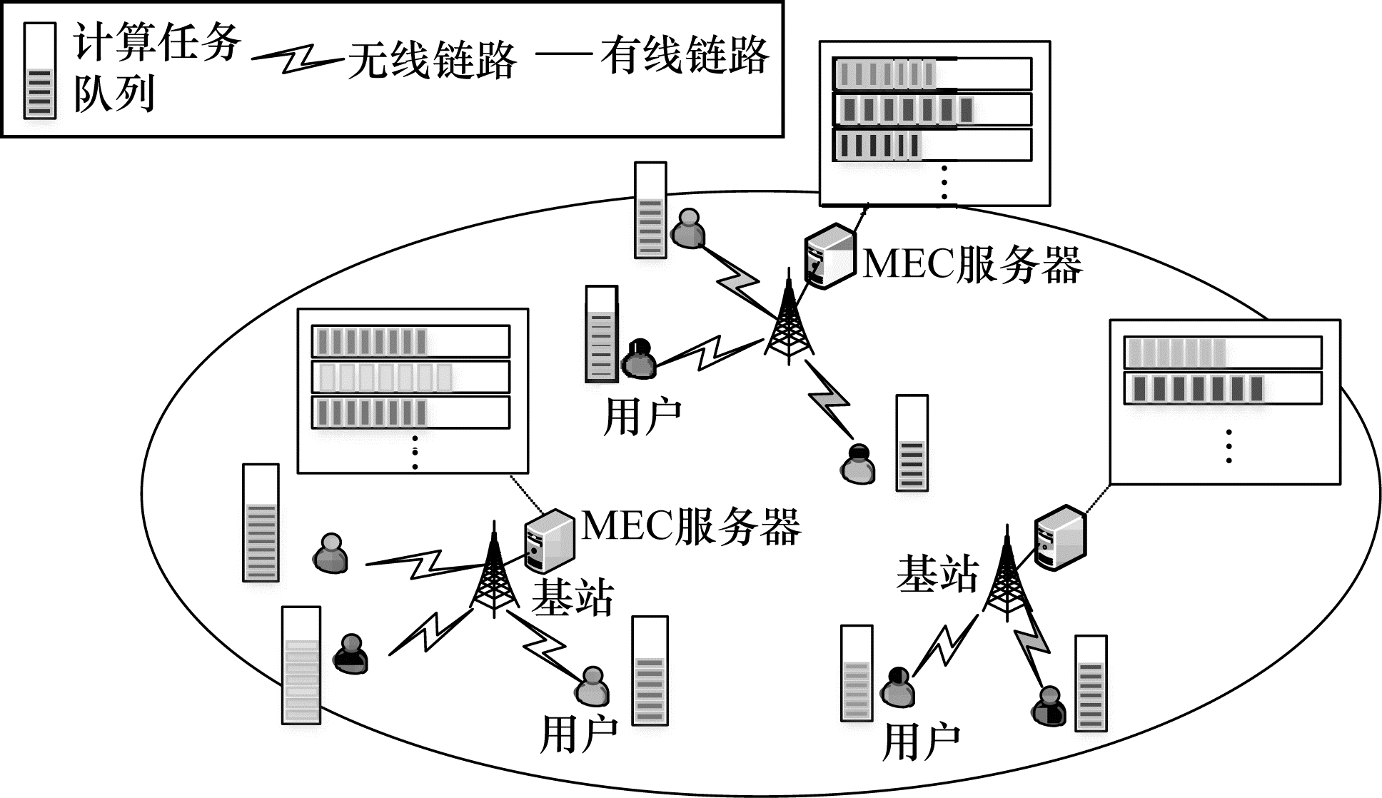 每个MEC服务器中有多个队列缓冲区,可以同时存储多个用户卸载但尚未由MEC服务器处理的计算任务。本文定义MEC服务器