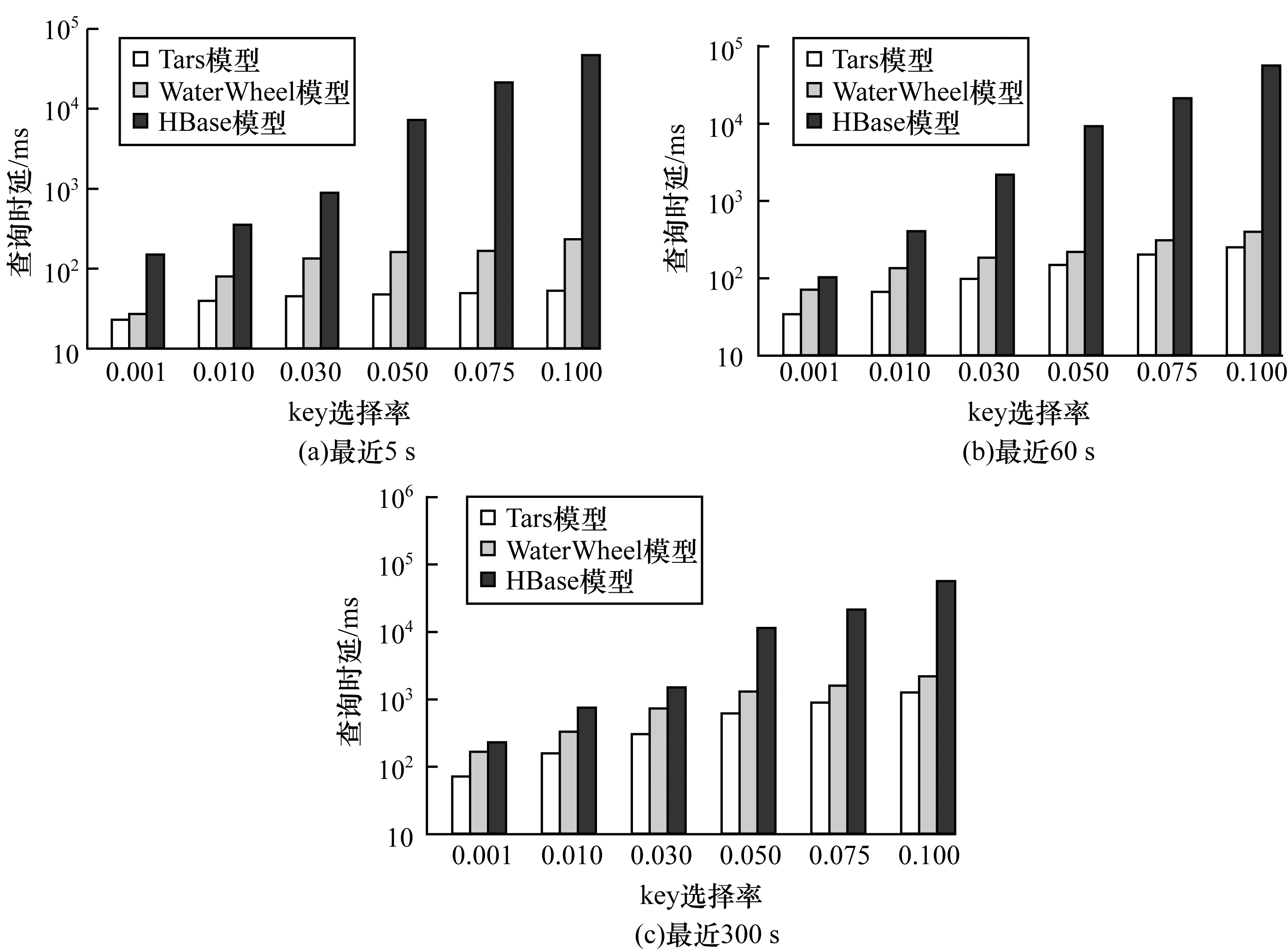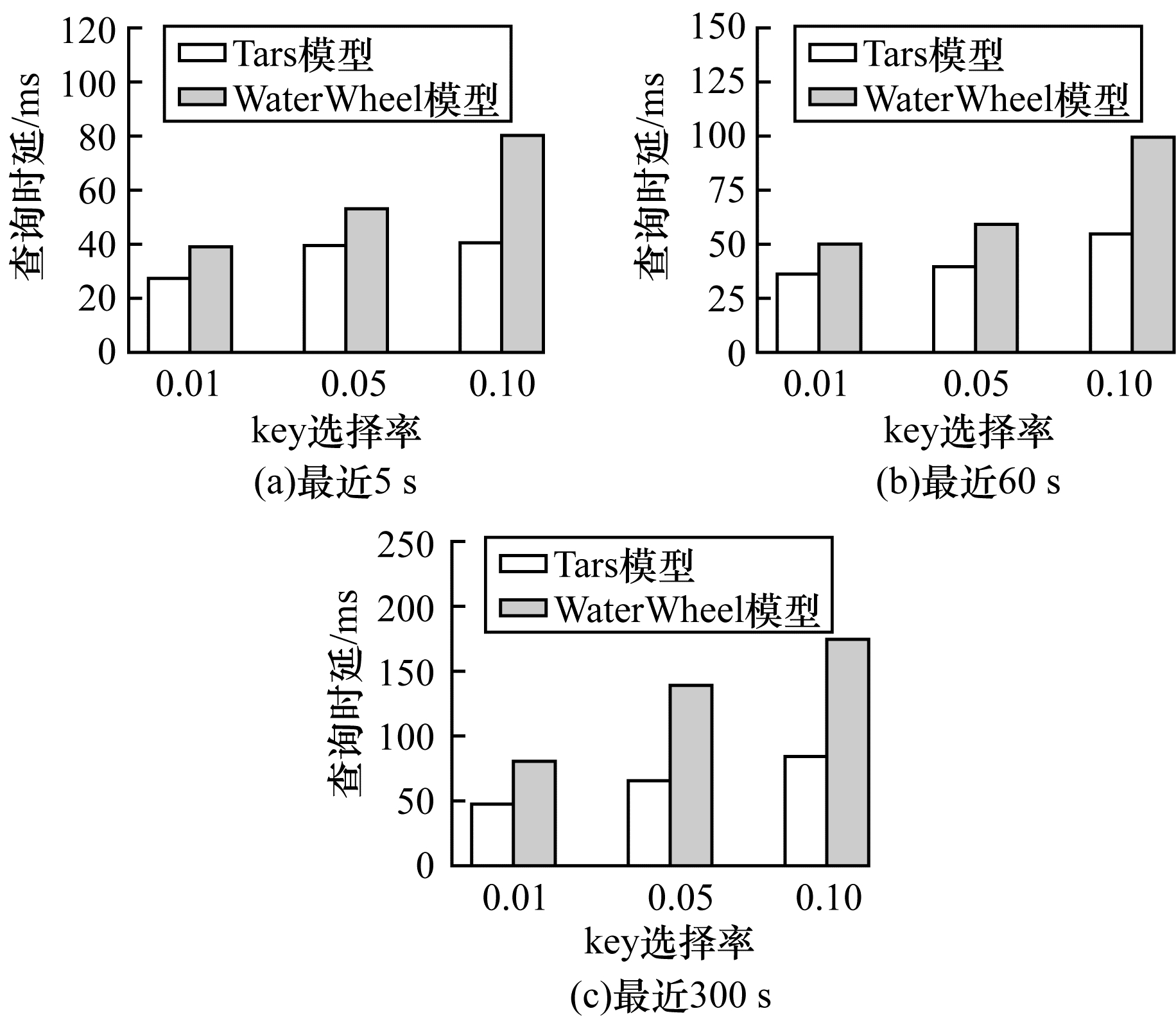 | 图 8 不同时间范围和key选择率下3种模型的查询性能对比 Fig. 8 Query performance comparison of three models under different time range and key selection rate | |