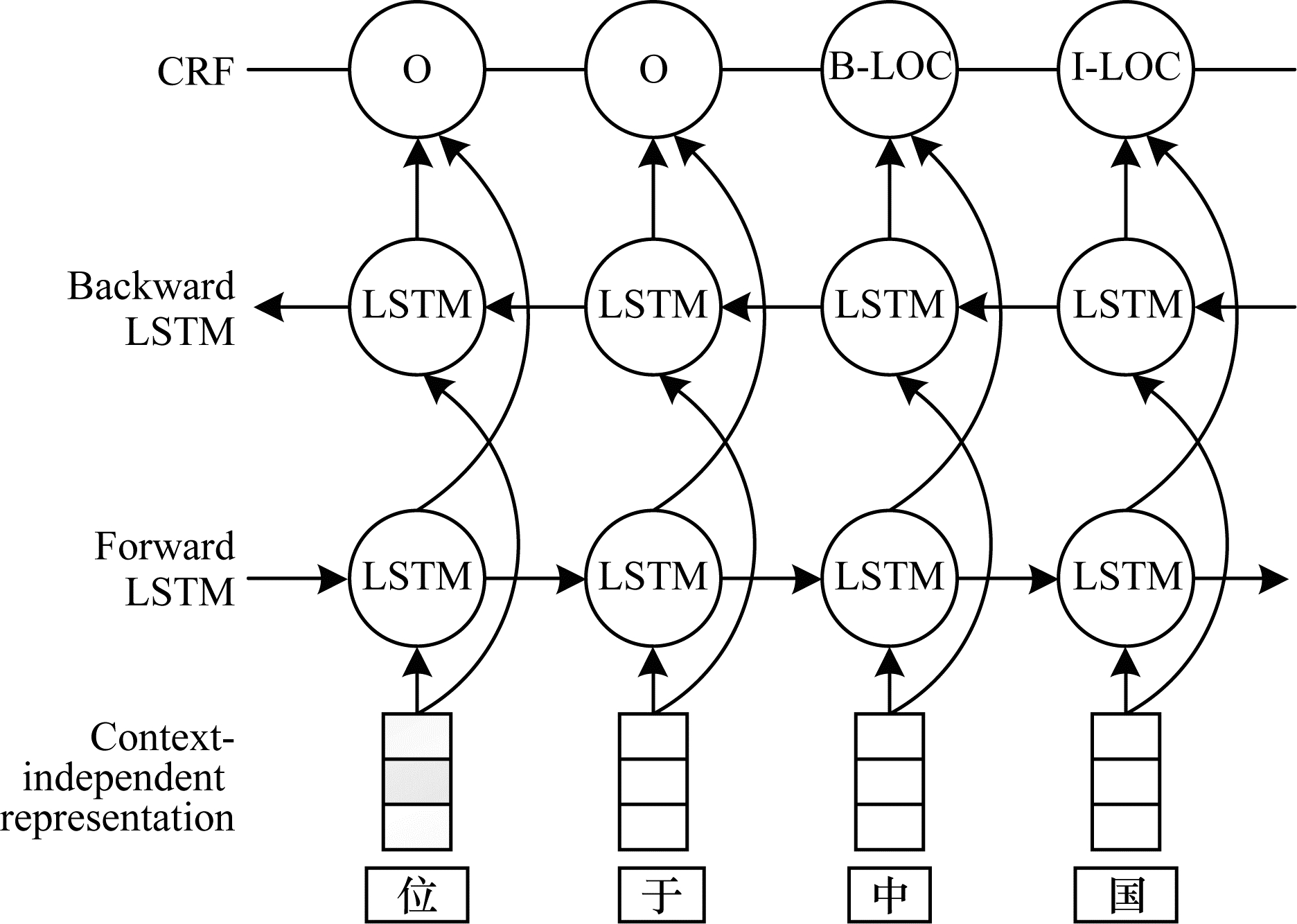 KURU O, CAN O A, YURET D.Charner: character-level named entity recognition[C]//Proceedings of the 26th International Conference on Computational Linguistics: Technical Papers.New York, USA: ACM Press, 2016: 911-921.
