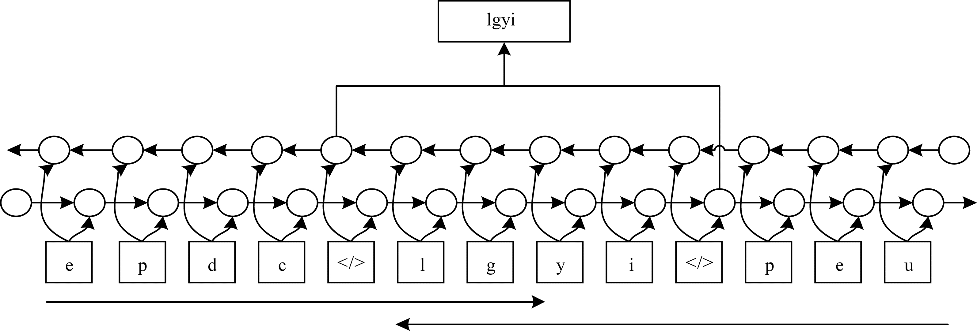 前向语言模型只能编码一个字的上文信息,因此,还需要一个后向语言模型来编码字的下文信息,如式(9)所示: