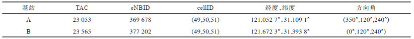 3.1 单站对比分析为了更好地呈现软间隔SVM算法的效果,本文分别选取城区基站A和郊区基站B进行方向角估算分析,基站的具体信息如表 1所示,2个基站均为标准的三扇区基站,样本量分别为35 007和74 576。