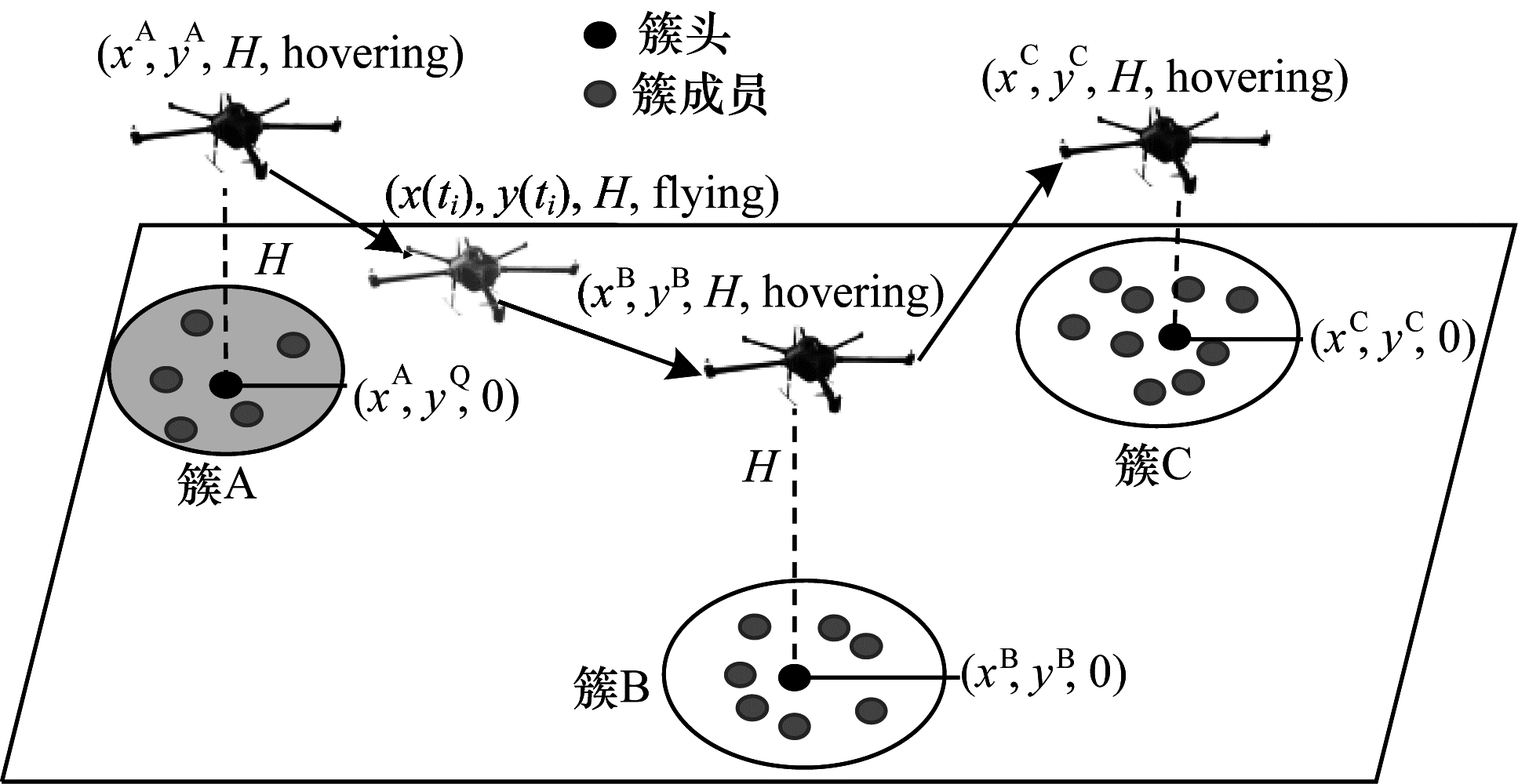 如图 3所示,无线传感器网络中的汇聚节点负责接收和处理从子节点多跳上传来的数据,无人机在空中作为一个移动采集器对地面上k个汇聚节点进行数据采集。