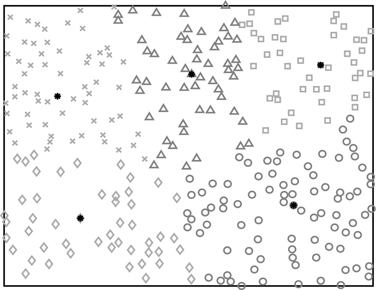 | 图 1 K-means分簇结果(k=4,n=30) Fig. 1 K-means clustering result(k=4, n=30) | |