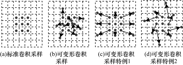 | 图 1 可变形卷积与普通卷积对比 Fig. 1 Comparison of deformable convolution and ordinary convolution | |