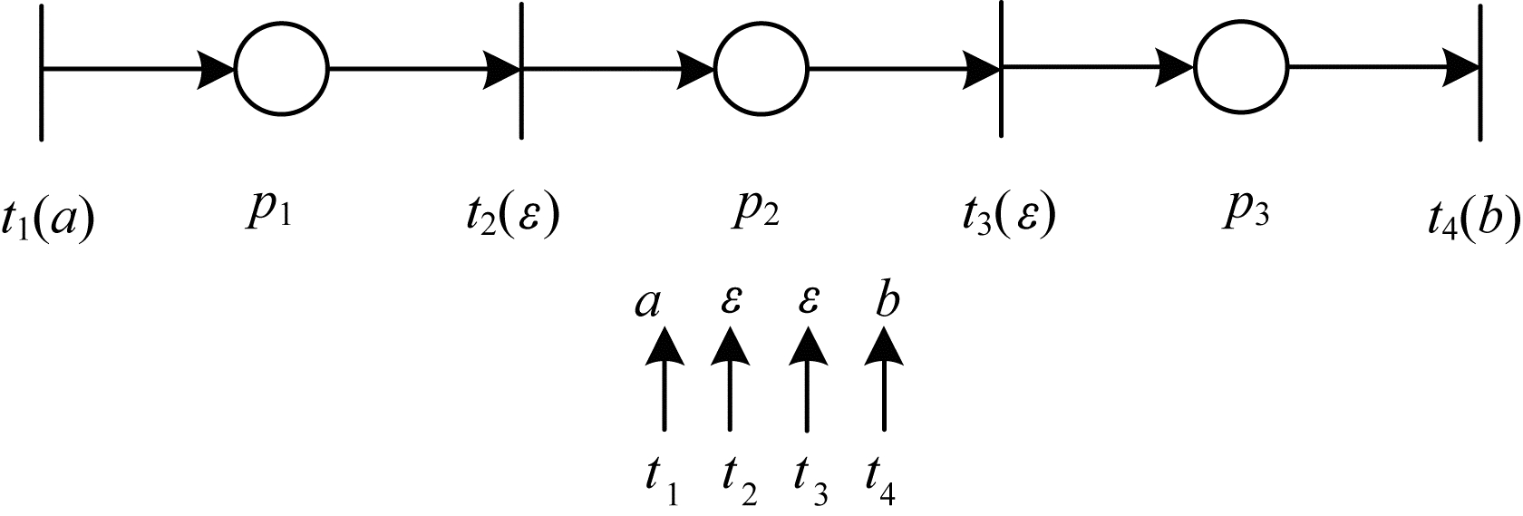 | 图 2 标注Petri网示意图 Fig. 2 Schematic diagram of labeled Petri nets | |