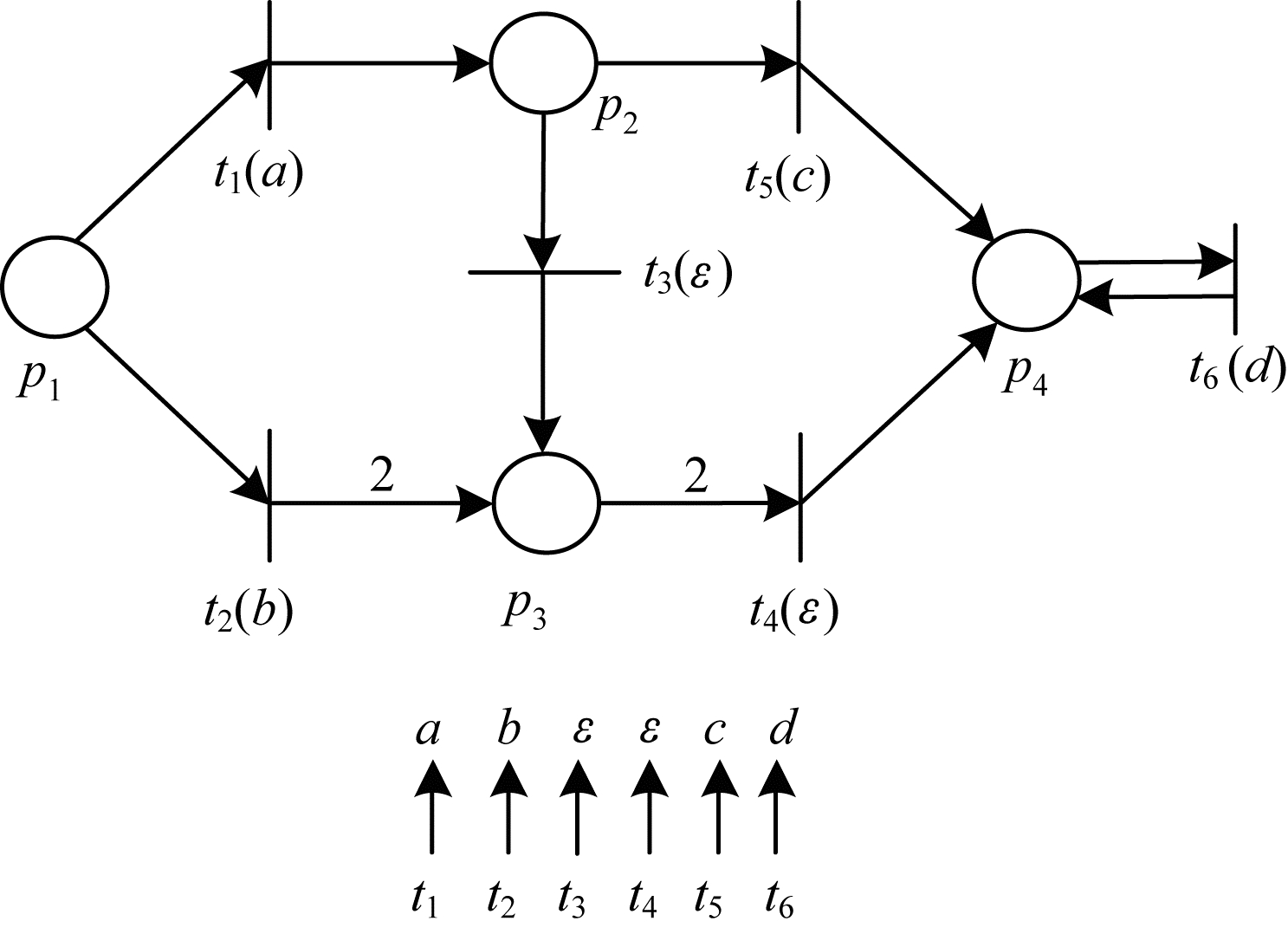 图 2所示为一个标注Petri网(N,M0,L∪{ɛ},