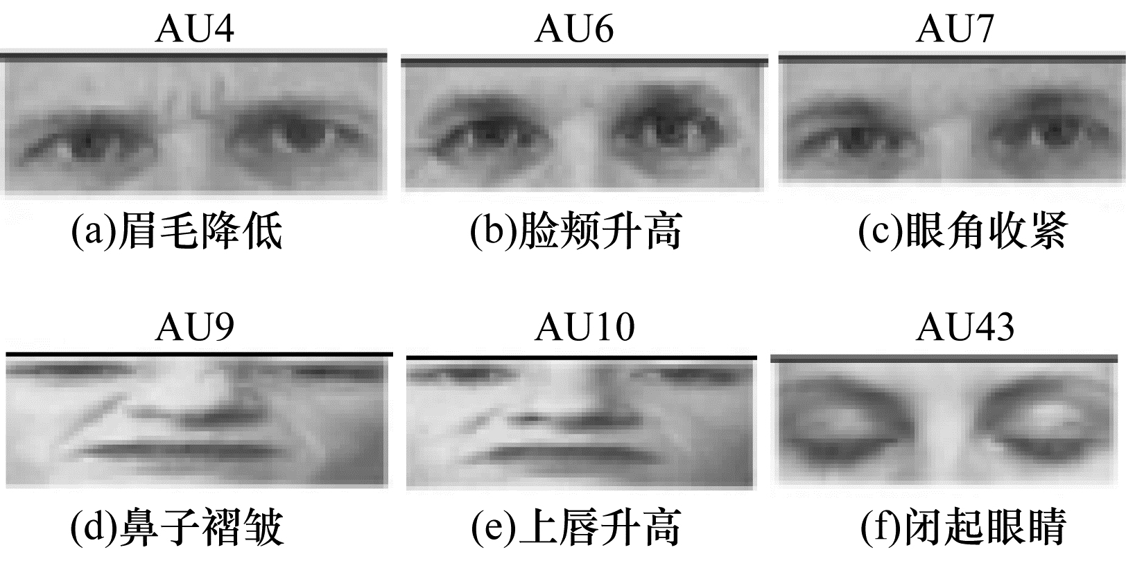 图 4展示了携带大量疼痛信息的6个AU在人脸面部的表现情况。