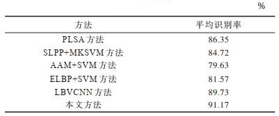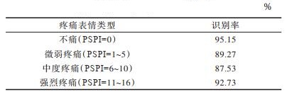 采用本文方法对不同等级的疼痛表情进行识别,结果如表 7所示。从表 7可以看出,本文方法对不同级别的疼痛表情识别率均在85%以上,说明本文方法可有效对疼痛表情进行识别。