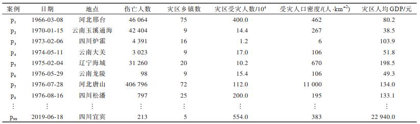 2 实验与结果分析本文进行多量级应急数据离散实验,数据源自国家地震科学数据共享中心、国家数据网、中国地震台网、中国应急信息网以及大量的相关新闻报道和论文数据,通过筛查得到99个应急数据用于本文研究。表 1为我国不同地区地震伤亡人数相关影响因素统计情况。