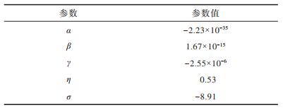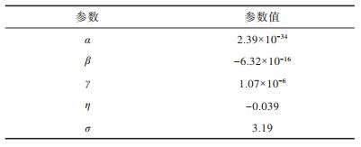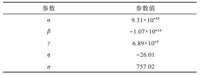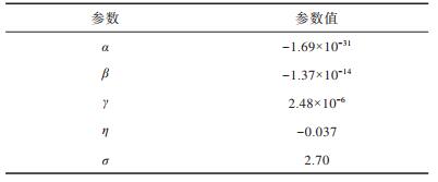 由图 6可以看出,该函数曲线在趋近末端时突然升高,这是数据的量级突然改变所致。表 2为图 6中拟合函数的多项式参数设置情况,根据拟合函数曲线计算得到