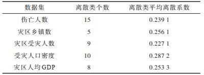 本文将数据离散量作为判定离散完成的指标,设置伤亡人数和灾区受灾人数的离散量为4,其他数据离散量为3。在将离散系数阈值作为判定条件下,当离散系数较低时多量级应急数据产生离散量过多(见2.2节),实验结果不具有实际指导意义。