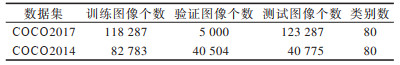 2.1 实验数据集本文选择的实验数据集是基于大尺度目标检测基准数据集COCO,且COCO2017与COCO2014数据集对比如表 1所示。