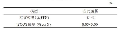 在去除FPN模块后,模型训练时的正负例比例得到平衡,模型正例标签在总标签个数占比如表 4所示。