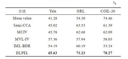 2) MCIV方法要求至少有一个完整视角,该方法可以更好地利用多视角数据的互补性,但仍没有DLPEL方法效果好,表明了本文方法处理一般不完整多视角数据的有效性,可以更广泛地应用到实际问题中。