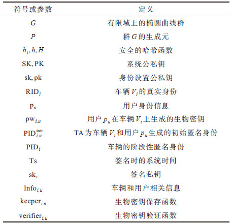 本文协议中的符号和参数定义如表 1所示。
