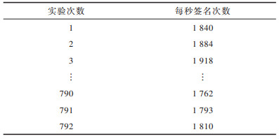 如表 5所示,证书签名进行了792次测试,输出了每秒签名次数,平均签名速度为每秒1 772次。