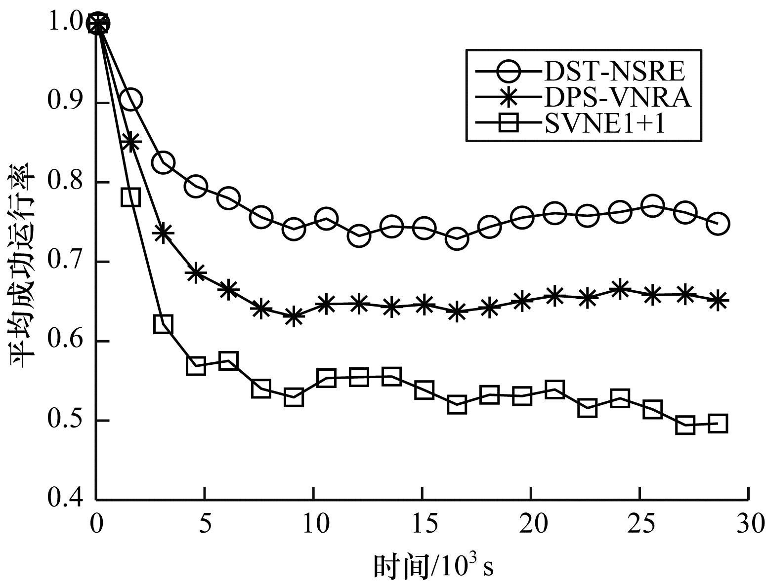 平均成功运行率反映了NS可靠性映射以及对链路故障恢复的有效性,计算公式为: