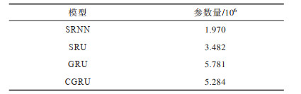 表 3所示为不同网络结构的参数量对比,从表 3可以看出,相对于GRU的双门控机制,CGRU由于采用了单门控机制,因此其参数量较少。